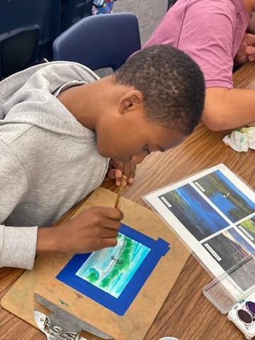 In the third activity, students examined what settlers “packed” when they came to Texas, exploring foods, language, traditions, clothing, and other cultural items. Students selected which items they would bring and explained their choices using picture cards. The final activity focused on art, including plein-air painting and the work of German artist Hermann Lungkwitz. Students discussed how the Texas landscape influenced his paintings, and some even created their own watercolor landscapes inspired by Lungkwitz.